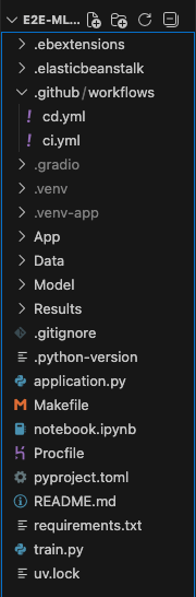 The harder part was creating the cd.yml and AWS configurations. Using GPT-5.2-instant, I've troubleshooted and created a working cd.yml pipeline which triggers after the completion of ci.yml. I've also added .elasticbeanstalk config.yml, .config files and .ebextensions. The gradio app also needs some configuration to suit the beanstalk environment.
